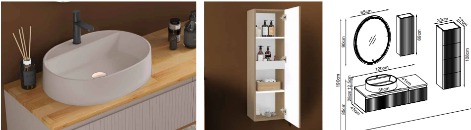 • Meuble suspendu : Idéal pour les petites salles de bain.