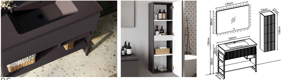 • Meuble suspendu : Idéal pour les petites salles de bain.