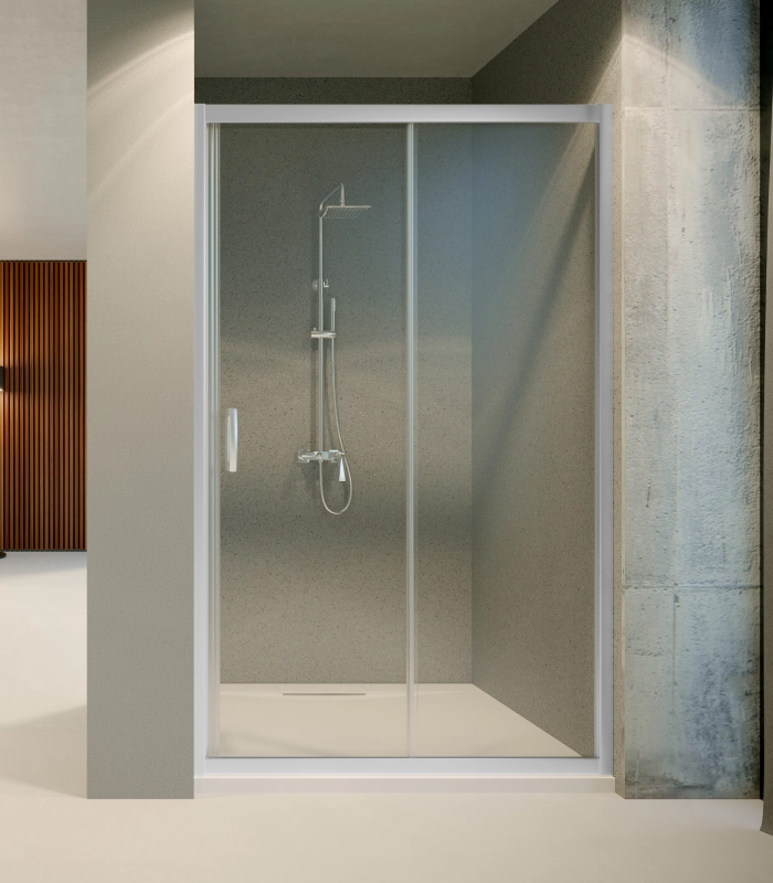 Cabine de douche coulissante en verre 1 fixe 1 coulissant Brillant
